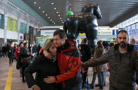 Thân nhân lo lắng, chờ đợi thông tin về số phận người nhà sau khi hay tin tại sân bay ở Dusseldorf- điểm đến của chuyến bay.