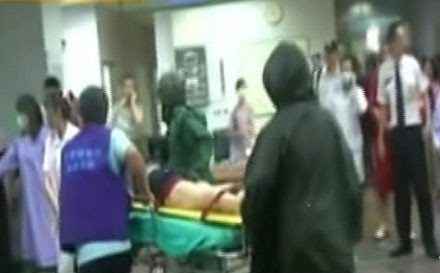 Các nhân viên cứu hộ đưa nạn nhân vào bệnh viện cấp cứu.