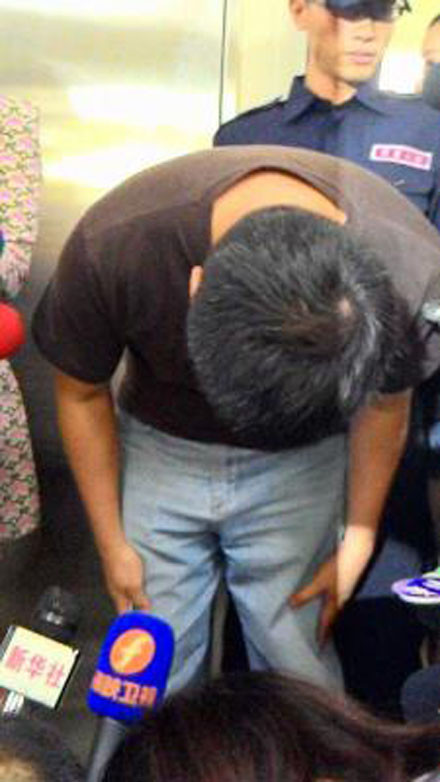 Trong cuộc họp báo nhanh sau vụ tai nạn, Tổng giám đốc của hãng hàng không Đài Loan TransAsia đã cúi gập người gửi lời xin lỗi tới tất cả thân nhân của các hành khách.