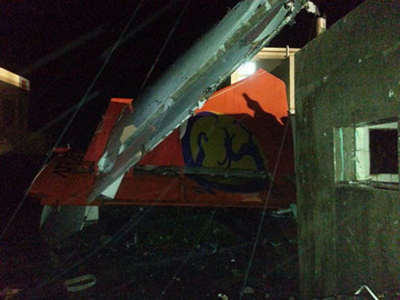 Hiện trường vụ tai nạn. Mảnh vỡ máy bay vương vãi khắp nơi.