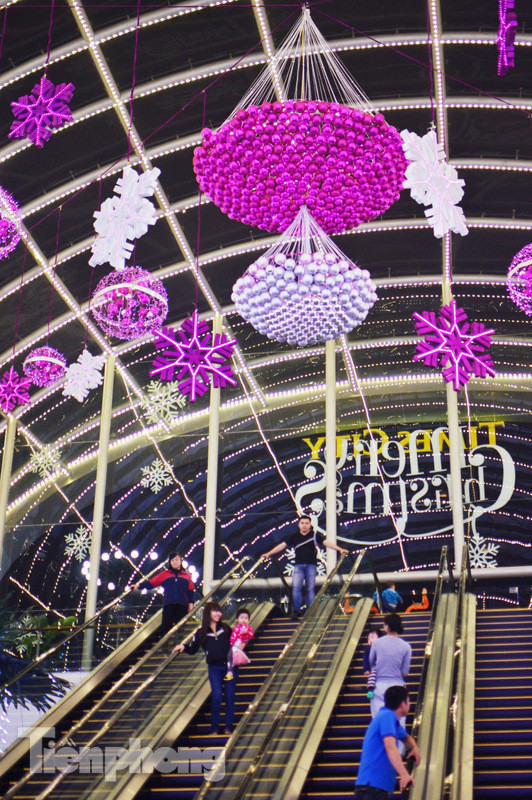 Những bông tuyết màu trắng và màu tím được trang trí bên trong TTTM Time City.