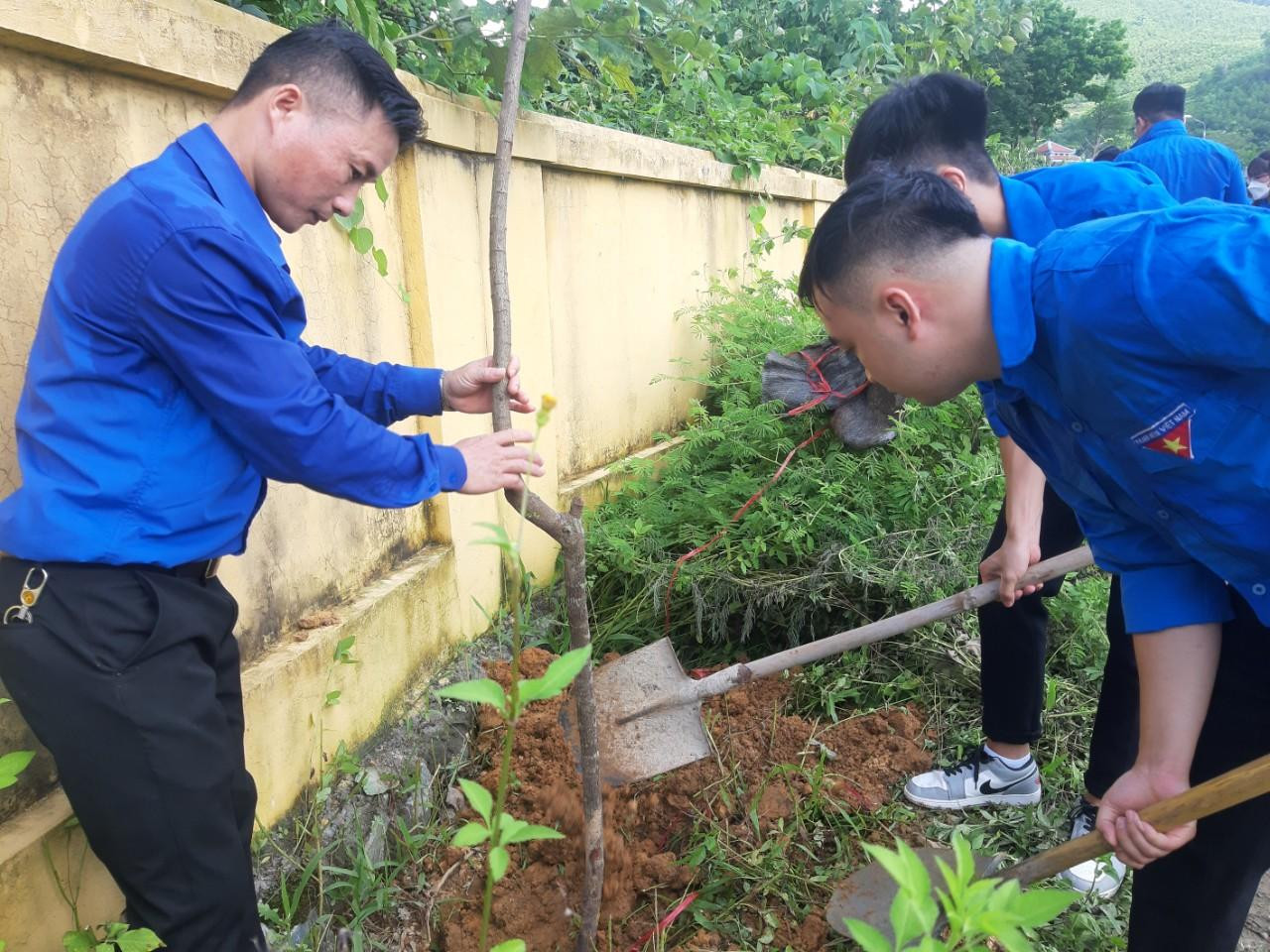 | Anh Lê Hữu Việt - Bí thư Đoàn cơ sở báo Tiền Phong (bên trái) tham gia hoạt động trồng cây cùng các bạn đoàn viên, thanh niên Cơ quan T.Ư Đoàn. |