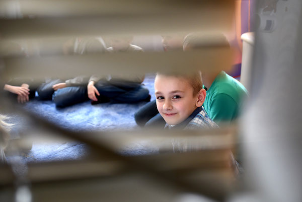 Maxim (8 tuổi), tham dự Trung tâm trị liệu tâm lý Promir ở Slovyansk, miền đông Ukraine. Maxim và gia đình buộc phải rời khỏi Kirovsk ở Luhansk cách đây gần ba năm khi cha của Maxin bị sát hại bởi một tay súng bắn tỉa. Ảnh: UNICEF