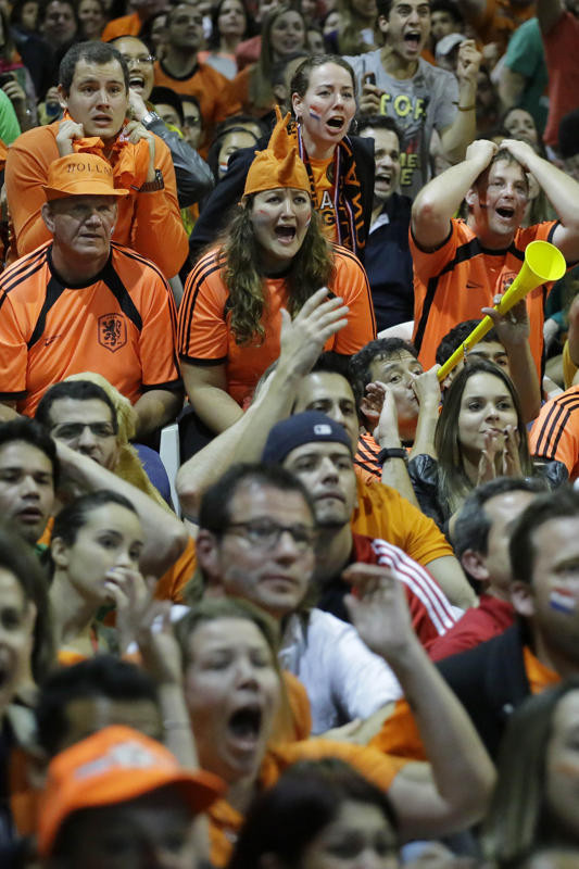 CĐV trong chiếc áo, lá cờ màu xanh trắng của Argentina hân hoan với chiến thắng, trong khi nước mắt rơi với những fan khoác trên mình chiếc áo màu da cam.