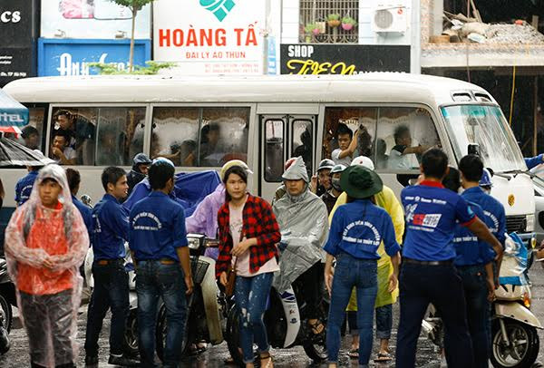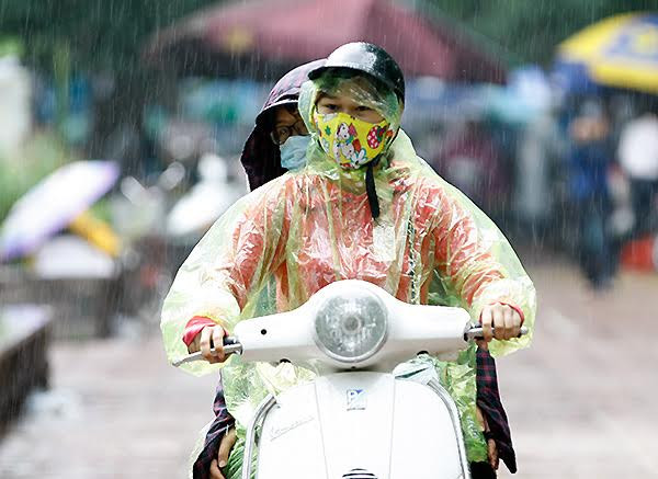 mưa to nên mọi người khá vất vả để đến trường đúng giờ