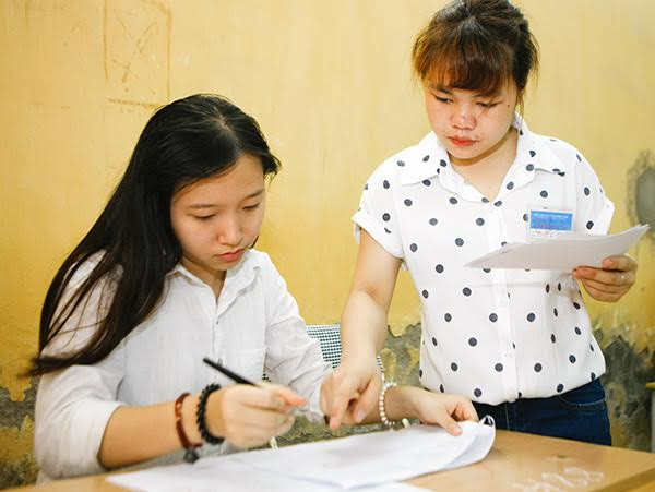 Một thí sinh được giám thị coi thi hướng dẫn kiểm tra thông tin