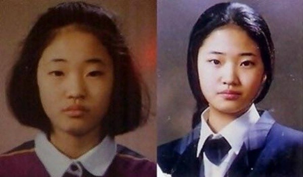 Kim Sa Rang - Hoa hậu Hàn Quốc năm 2000 - khiến người hâm mộ bất ngờ khi những bức ảnh thời còn đi học được đăng tải. Ngày xưa, Kim Sa Rang có gương mặt tròn trịa, đôi mắt một mí rõ ràng, mũi và môi không có gì nổi bật.