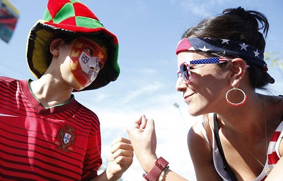 CĐV Mỹ và Bồ Đào Nha thách đấu nhau trước giờ khai cuộc.