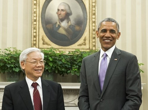 Tổng thống Hoa Kỳ Barack Obama ngày 7/7 đã tiếp Tổng Bí thư Đảng Cộng sản Việt Nam Nguyễn Phú Trọng tại Phòng Bầu dục ở Nhà Trắng, mở ra chương mới trong quan hệ giữa hai nước. Ảnh : Trí Dũng/TTXVN.