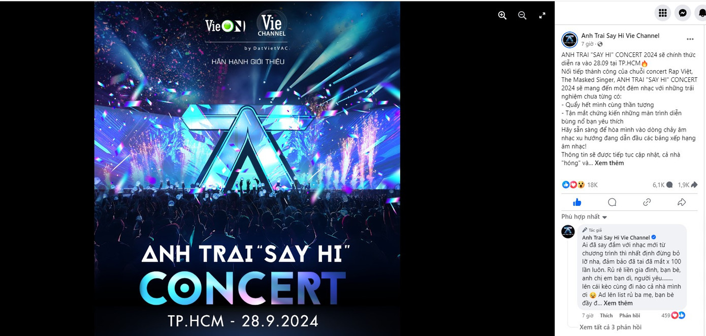 Sau khi Anh Trai "Say Hi" ấn định ngày diễn ra concert, fanpage chương trình đã thu hút hàng trăm ngàn lượt tương tác từ fan. Những sân khấu live đẹp mắt, được dàn dựng công phu là điều người hâm mộ vô cùng chờ mong. Hiện tại, fan của các Anh Trai như: Song Luân, HIEUTHUHAI, Lou Hoàng, Hải Đăng Doo đã rủ nhau săn vé concert, đăng ký giữ chỗ...