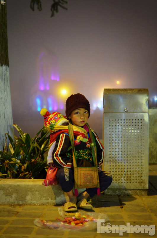 Trời rét buốt, các em nhỏ vẫn được mẹ dẫn đi bán hàng cùng tại khu vực Nhà thờ đá (thị trấn Sa Pa, Sa Pa, Lào Cai).