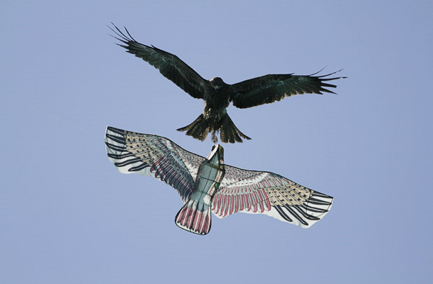 Chim ưng thật tấn công chim ưng giả tại lễ hội diều quốc tế tổ chức ở Ahmadabad, Ấn Độ.