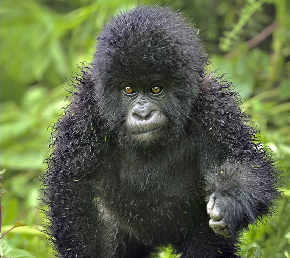 Lông khỉ đột xoăn tít do tác động của sương mù trong một khu rừng thuộc dãy núi Virunga, Rwanda.