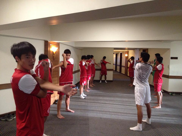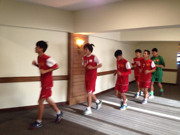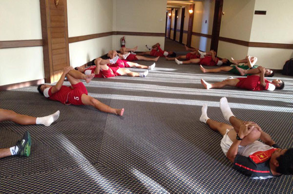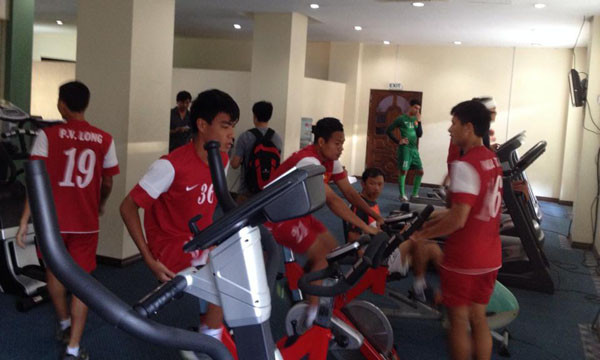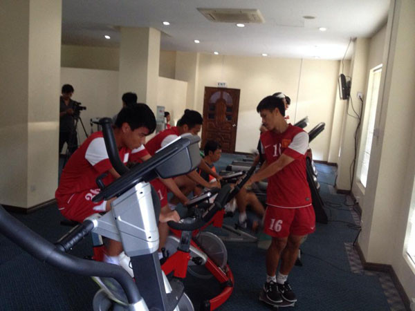 Trong khi đó, các cầu thủ dự bị tập tại phòng Thể dục ở tầng 1 của khách sạn.