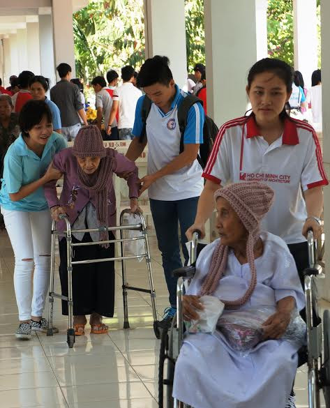 Cùng dịp này, hơn 40 sinh viên trường trường Đại học Kiến Trúc TPHCM phân hiệu Cần Thơ và sinh viên Đại học Y Dược Cần Thơ đến thăm hỏi, tặng quà cho các cụ.