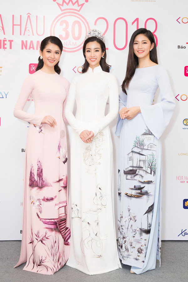 Để tôn vinh vẻ đẹp truyền thồng người phụ nữ Việt Nam, hưởng ứng Tuần lễ áo dài tại TPHCM, các người đẹp, BTC và một số khách mời tham dự tham dự họp báo Hoa hậu Việt Nam 2018 diễn ra tại khách sạn Lotte Legend Sài Gòn đều xuất hiện dịu dàng đằm thắm trong tà áo dài.