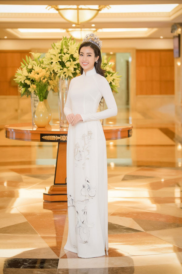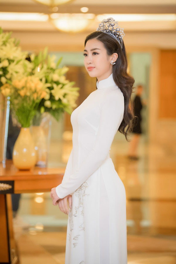 Mỗi lần diện áo dài, Hoa hậu Mỹ Linh đều khiến người khác phải xuýt xoa vì vẻ đẹp nền nã, thanh thoát của mình
