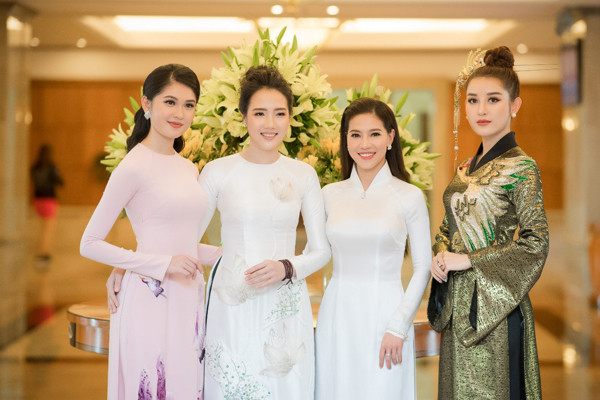 Không chỉ có Mỹ Linh, các người đẹp khác cũng đã xuất hiện tại không gian sang trọng của khách sạn Lotte Legend Sài Gòn với những tà áo dài thướt tha, thanh thoát.