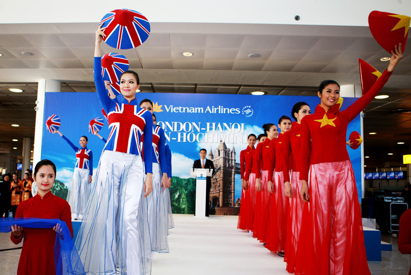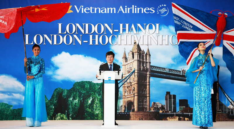 Bộ trưởng Bộ Giao thông vận tải Đinh La Thăng và lãnh đạo hàng không Việt Nam, lãnh đạo hàng không Anh quốc cùng có mặt trong lễ khai mở đường bay. Nghệ sĩ nhiếp ảnh Hải Đông ghi lại những hình ảnh đẹp này.