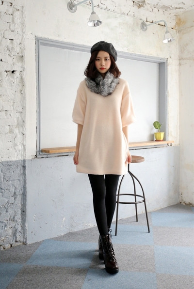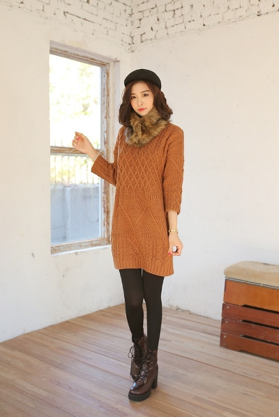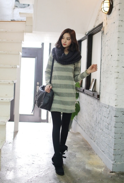 Áo len dáng dài vừa có thể mặc được như váy lại vừa có thể mặc được như váy là sự lựa chọn mà bạn không thể bỏ qua. Bạn sẽ có vô vàn những cách mix đồ hay ho từ loại trang phục nữ mùa đông cực hot này. Đơn giản nhất là mix cùng quần legging màu đen mỏng và giày bốt cao cổ.