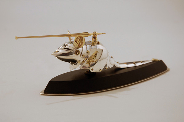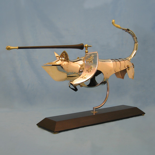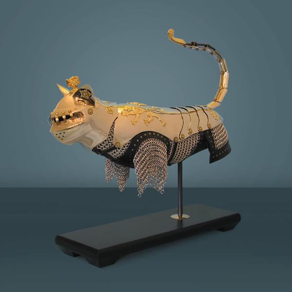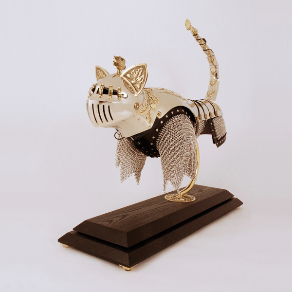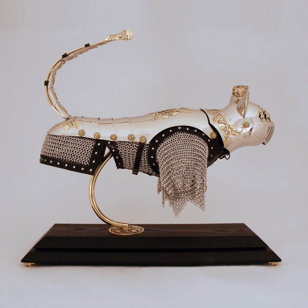Bộ sưu tập áo giáp “tí hon” của ông dưới đây có rất nhiều kiếu, từ áo giáp đấu gươm, áo giáp của các hiệp sĩ thời trung cổ ở Châu Âu cho tới áo giáp của các võ sĩ Samurai Nhật Bản. Ông bắt đầu thực hiện bộ sưu tập này từ những năm 90, ban đầu chỉ là những mẫu thiết kế dành cho những chú chuột. Sau này ông cho rằng tạo thành những cặp áo giáp đôi cho mèo và chuột sẽ rất thú vị và thế là ông bắt tay vào làm. Chất liệu chủ yếu của những chiếc áo giáp này là bạc, đồng và gỗ. Mỗi một tác phẩm có giá từ 500 đến 2000 USD.