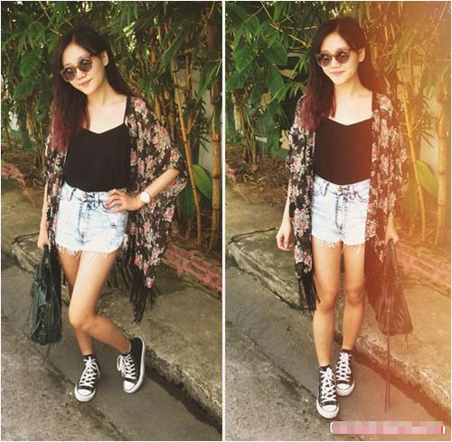Áo khoác kimono nằm trong danh sách trang phục hot nhất mùa hè năm nay với kiểu dáng lạ mắt. Nó thường được kết hợp cùng quần short, áo hai dây hoặc ba lỗ.