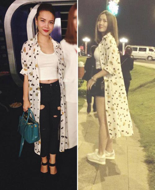 Chiếc áo khoác lấy cảm hứng từ áo sơ mi rất lạ mắt của chị em Yến Trang, Yến Nhi.