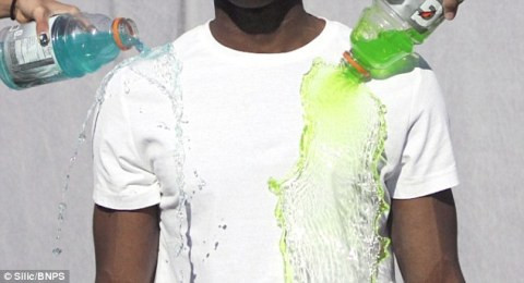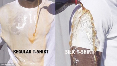 Chiếc áo này “miễn dịch” với mọi loại chất lỏng như Coca-cola, nước sốt cà chua, mù tạt, trứng đánh kem, bia, mực hay rượu vang.