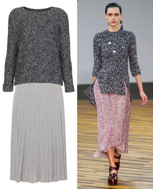 Dõi theo những bộ sưu tập thời trang Thu Đông 2014 từ các thương hiệu đình đám, dễ dàng nhận thấy sự kết hợp giữa áo len và chân váy là nguồn cảm hứng đơn giản mà vô cùng tuyệt vời để các nàng ứng dụng trong phong cách thường nhật.