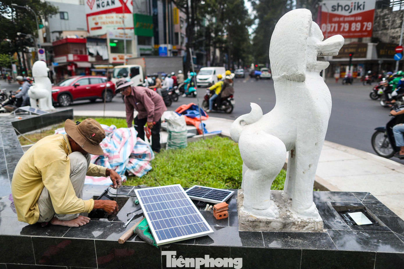 | Tượng đài được "thay áo mới" nhưng vẫn giữ lại được màu sơn nguyên bản như trước, phần chân tượng và hệ thống đèn chiếu sáng được tu sửa, bùng binh quanh chân tượng cũng được chỉnh trang lại sạch đẹp. |