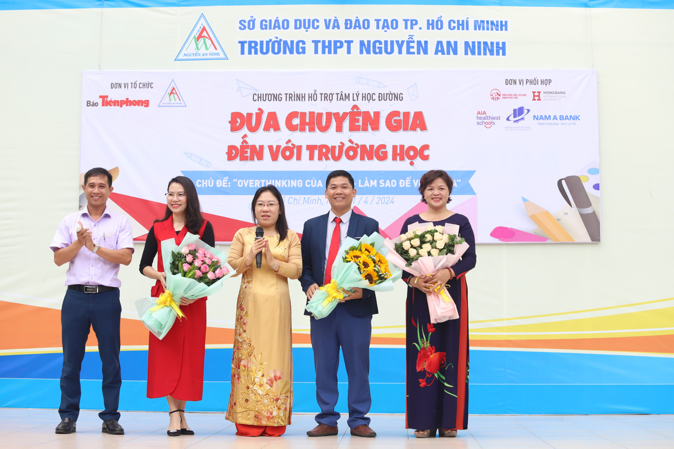 Ngày 1/4, báo Tiền Phong phối hợp cùng AIA Việt Nam, Trường Đại học Quốc tế Hồng Bàng, Trường Đại học Mở TPHCM và Ngân hàng Nam Á tổ chức chương trình “Hỗ trợ tâm lý học đường - Đưa chuyên gia đến trường học” với chủ đề “Overthinking của gen Z: Làm sao để vượt qua?” tại Trường THPT Nguyễn An Ninh (quận 10, TPHCM) và Trường THPT Phú Nhuận (quận Phú Nhuận, TPHCM).