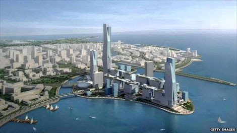 Fahd al-Rasheed cũng thông báo "trạm tàu điện Haramain sẽ mở cửa hoạt động vào cuối năm 2015". Trạm được thiết kế bởi Norman Foster - kiến trúc sư người Anh nổi tiếng với hai công trình đồ sộ tháp chọc trời "Gherkin" ở thủ đô London nước Anh và Vòm Reichstag Dome ở thủ đô Berlin của Đức. Trong khi Jeddah - đô thị lớn thứ 2, sau thủ đô Riyadh, nằm ở phía tây Ảrập Xêút - tràn ngập ôtô, KAEC tương lai được tuyên bố sẽ là siêu thành phố giới hạn khí thải nhờ mạng lưới ôtô điện được nạp năng lượng miễn phí. KAEC được xây dựng cùng lúc với 4 thành phố khổng lồ mới khác và tất cả đều nằm dưới sự giám sát chặt chẽ của Cơ quan Quản lý Các thành phố kinh tế (ECA) của chính quyền Ảrập Xêút.