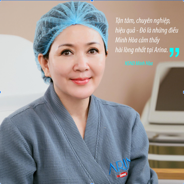 "Ngoài hiệu quả nâng cơ nhìn thấy rõ ràng bằng mắt thường, tác phong phục vụ chuyên nghiệp, chu đáo và tận tâm của đội ngũ y bác sĩ là điều khiến Minh Hòa thấy thích và quyết định gắn bó với Arina", NSND Minh Hòa chia sẻ về dịch vụ nâng cơ tại Arina.