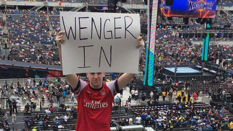 Phe phản đối Wenger ngày càng cực đoan. Nhưng phe bảo vệ Wenger cũng không chịu ngồi yên. Cùng ngày ở sự kiện Wrestlemania 33 bên Orlando, tấm biển “Wenger In” xuất hiện song hành với tấm biển “Wenger Out”. Thậm chí, fan trung thành của Giáo sư còn trưng “Wenger In” ở vị trí nổi bật hơn.