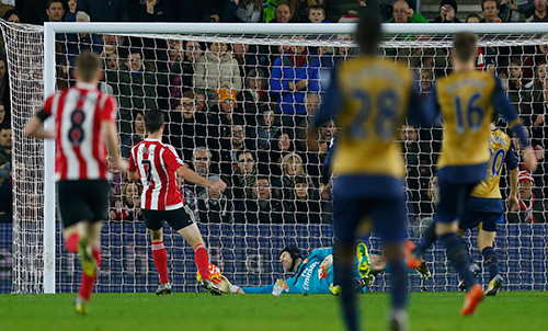 Từ pha phản công nhanh vào phút thứ 55, Shane Long dễ dàng đệm bóng từ khoảng cách gần nâng tỷ số lên 2-0 cho Southampton. Sau đó ít phút, Fonte đánh đầu ghi bàn thứ ba cho đội chủ nhà. Phút 90, Arsenal kết thúc một ngày thi đấu thảm hại bằng hình ảnh Per Mertesacker bị Shane Long cho “ngửi khói” trong bàn ấn định chiến thắng 4-0 của Southampton.