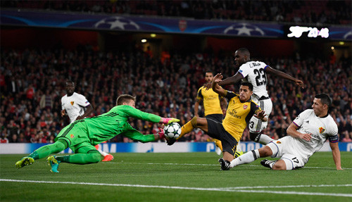 Trong thế trận áp đảo, với số lần dứt điểm (19) và bóng hướng trúng khung thành (7) đều gấp ba lần đối thủ, Arsenal đáng ra đã có thể ghi nhiều hơn hai bàn để bứt phá về mặt vị trí tại bảng A. Nacho Monreal, Mesut Ozil hay cầu thủ vào sân thay người Alex Oxlade-Chamberlain đều có cơ hội nhưng hoặc sút chệch đích hoặc không thể đánh bại được thủ thành xuất sắc Tomas Vacliik của Basel. Tuy nhiên, đáng kể nhất phải là Sanchez.