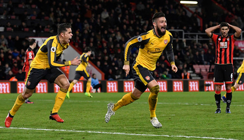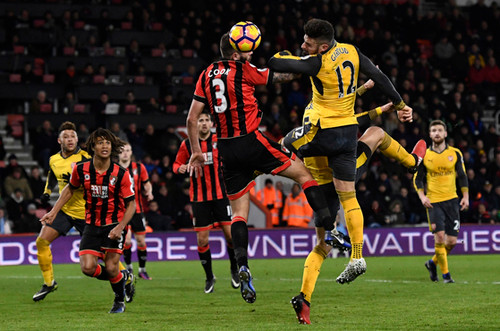 Hàng phòng ngự Bournemouth đứng vững đến hết thời gian thi đấu chính thức, nhưng khi trọng tài bàn thông báo trận đấu có sáu phút bù giờ, khuôn mặt các CĐV chủ nhà lộ rõ sự lo lắng. Và điều mà họ e sợ quả thực đã xảy đến. Phút bù giờ thứ hai, Giroud khiến CĐV của Bournemouth chết lặng khi đánh đầu đưa bóng dội cột dọc lăn vào lưới gỡ hoà 3-3.