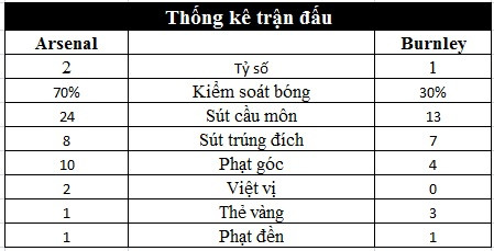 Ba điểm kịch tính đưa Arsenal lên vị trí nhì bảng với 47 điểm. Pháo thủ ít hơn Chelsea 5 điểm và đá nhiều hơn 1 trận. Với bàn thắng ấn định tỷ số 2-1, Alexis Sanchez đã sở hữu 15 pha lập công tại Premier League mùa này. Qua đó, cầu thủ người Chile vượt qua Diego Costa và Ibrahimovic (cùng 14 bàn thắng) để vươn lên dẫn đầu danh sách Vua phá lưới. Phong độ thuyết phục trước Burnley của Sanchez cũng xóa tan những nghi ngờ về tương lai của cầu thủ này tại Emirates.
