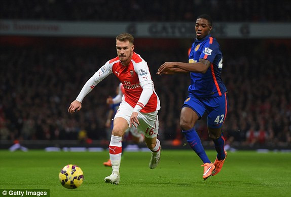 Phút thứ 5, Welbeck (23-Arsenal) thoát xuống nhận đường chuyền của Chamberlain rồi tung cú đá nhanh nhưng bóng đã bị chặn bởi một hậu vệ M.U.