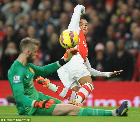 Phút thứ 61, Oxlade-Chamberlain (15-Arsenal) tạt bóng chuẩn xác cho Alexis Sanchez (17) đánh đầu cực mạnh. Nhưng một lần nữa, thủ môn De Gea (1-M.U) lại là người chiến thắng.