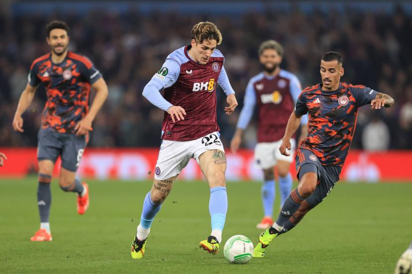 Aston Villa nhập cuộc không tốt và sớm phải nhận hai "gáo nước lạnh" từ Olympiakos. Tiền đạo Ayoub El Kaabi mở tỷ số cho đội bóng đến từ Hy Lạp vào phút 16 sau pha dứt điểm gọn gàng trong vòng cấm. Phút 29, Daniel Podence chuyền bóng giúp Ayoub El Kaabi đối mặt với thủ môn Olsen. Anh làm động tác giả khiến thủ môn người Thụy Điển mất thăng bằng rồi bấm bóng làm tung lưới Aston Villa.