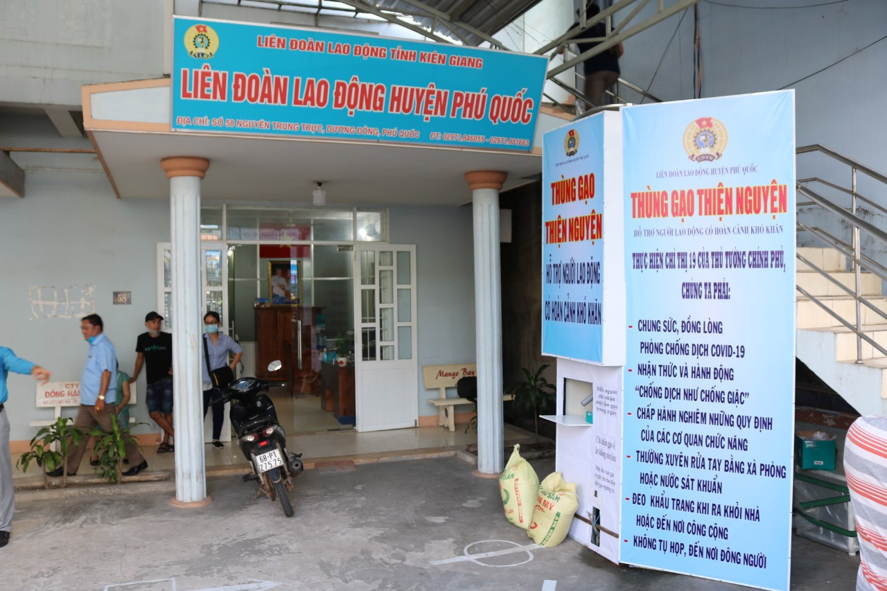 Buổi bàn giao "ATM gạo" và 10 tấn gạo cho LĐLĐ huyện Phú Quốc. Sau khi tiếp nhận, địa phương đã đặt máy này tại thị trấn An Thới (huyện Phú Quốc) nhằm phục vụ người lao động có hoàn cảnh khó khăn. Sau khi đi vào hoạt động đã có rất đông người đến nhận gạo.