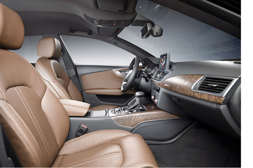 Về phần nội thất, A7 được trang bị giao diện cảm ứng cho hệ thống thông tin giải trí MMI cùng chức năng hiển thị trên kính lái HUD lần đầu tiên xuất hiện trên xe Audi. Hệ thống liên lạc giải trí trên xe gồm các chức năng kết nối WLAN, hệ thống âm thanh tiêu chuẩn Bose (tùy chọn Bang & Olufsen), dịch vụ Google và kết nối Bluetooth.