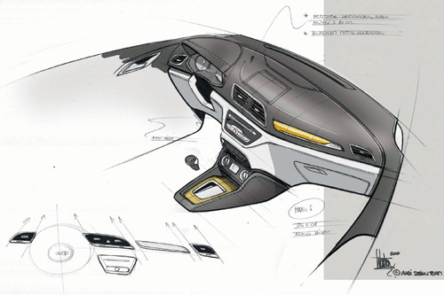 Hình ảnh trong phần nội thất cho thấy kiểu vô lăng và cụm đồng hồ hiển thị được giữ nguyên, nhưng có thay đổi tại cụm điều khiển trung tâm, với cần chuyển số được thiết kế truyền thống hơn, khác với sự phá cách trên bản concept 2007.