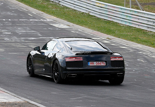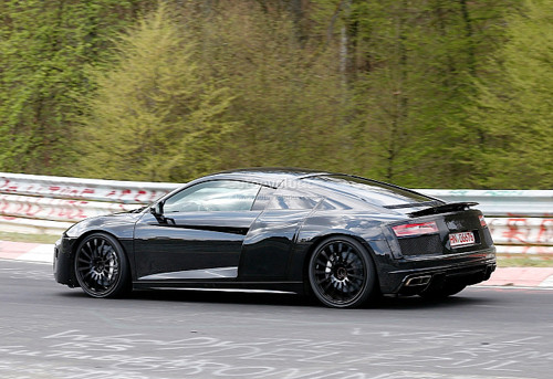 Gần như toàn bộ thân xe của Audi R8 thế hệ mới xuất hiện trên đường chạy thử ở Nurburgring mà không có lớp dán ngụy trang. Phần mũi xe có vẻ vẫn chưa hoàn toàn là thiết kế của phiên bản thương mại, tuy nhiên có thể thấy thế hệ mới đã có sự biến đổi hoàn toàn so với thế hệ hiện tại. Những đường nét bo tròn xuất hiện khá ít, thay vào đó là những đoạn thẳng.