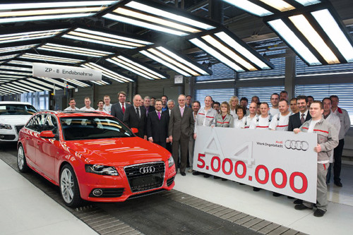 Audi xác nhận chiếc A4 thứ năm triệu đã lăn bánh khỏi nhà máy chính của hãng tại thành phố Ingolstadt, Đức, đó là chiếc A4 2.0 TFSI quattro với nước sơn màu đỏ Misano Red.