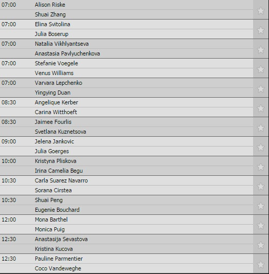 Tại nội dung đơn nữ, những ứng viên vô địch như Serena Williams (2), Angelique Kerber (1) hay Agnieszka Radwanska (3)... đều khởi đầu thuận lợi. Thế nhưng Simona Halep thì lại không có được niềm vui như vậy. Hạt giống số 4 người Romania bất ngờ thua Shelby Rogers 3-6, 1-6.