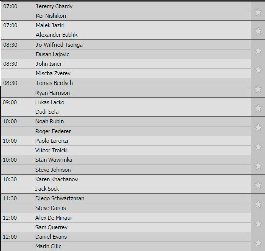 Ở trận đấu khác, hạt giống số ba Milos Raonic giành chiến thắng dễ dàng trước Dustin Brown với tỷ số 6-3, 6-4, 6-2.