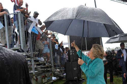 Các nhà hậu cần dự kiến dành một lượng thời gian lớn cho cuộc vận động ở Florida và khi bà Clinton bước lên sân khấu ở quận Broward, mưa dường như đã tạnh.