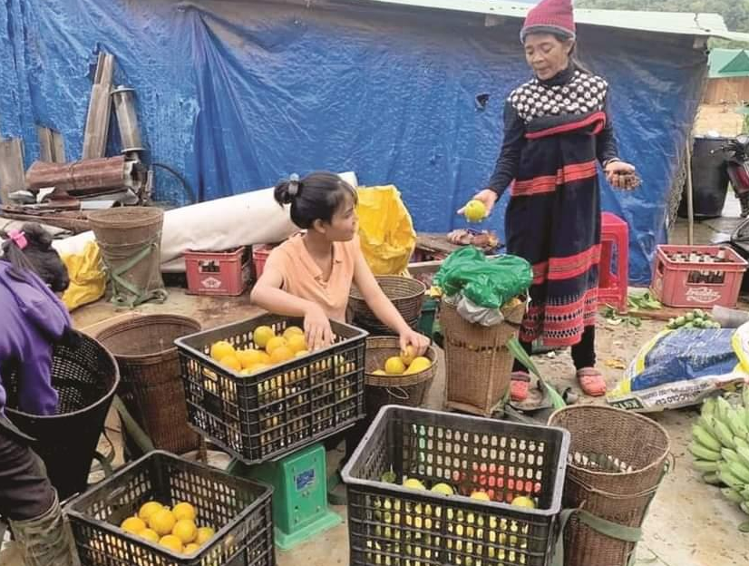 | Riah Dung, Bí thư đoàn xã Ga Ry đã kết nối các đơn vị ở nhiều nơi đưa cam xuống tiêu thụ. |